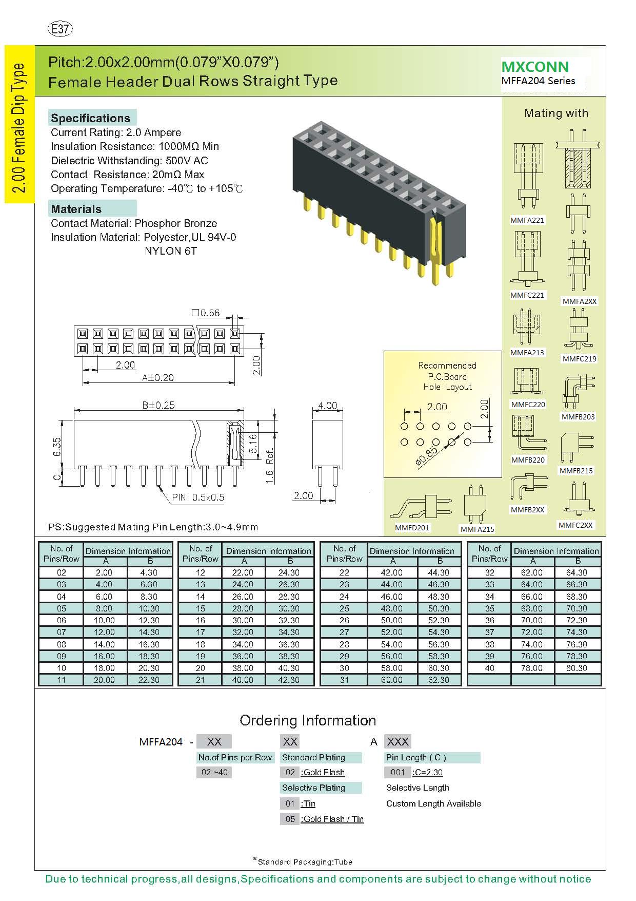 ·Pitch:2.0mm