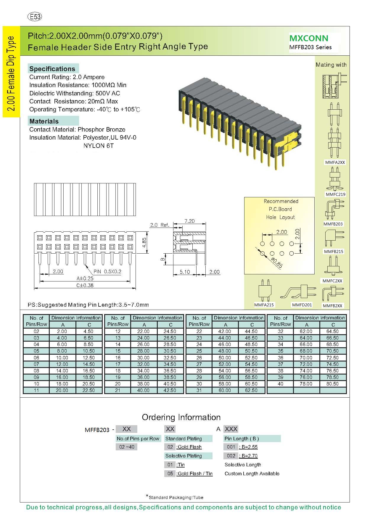 ·Pitch:2.0mm