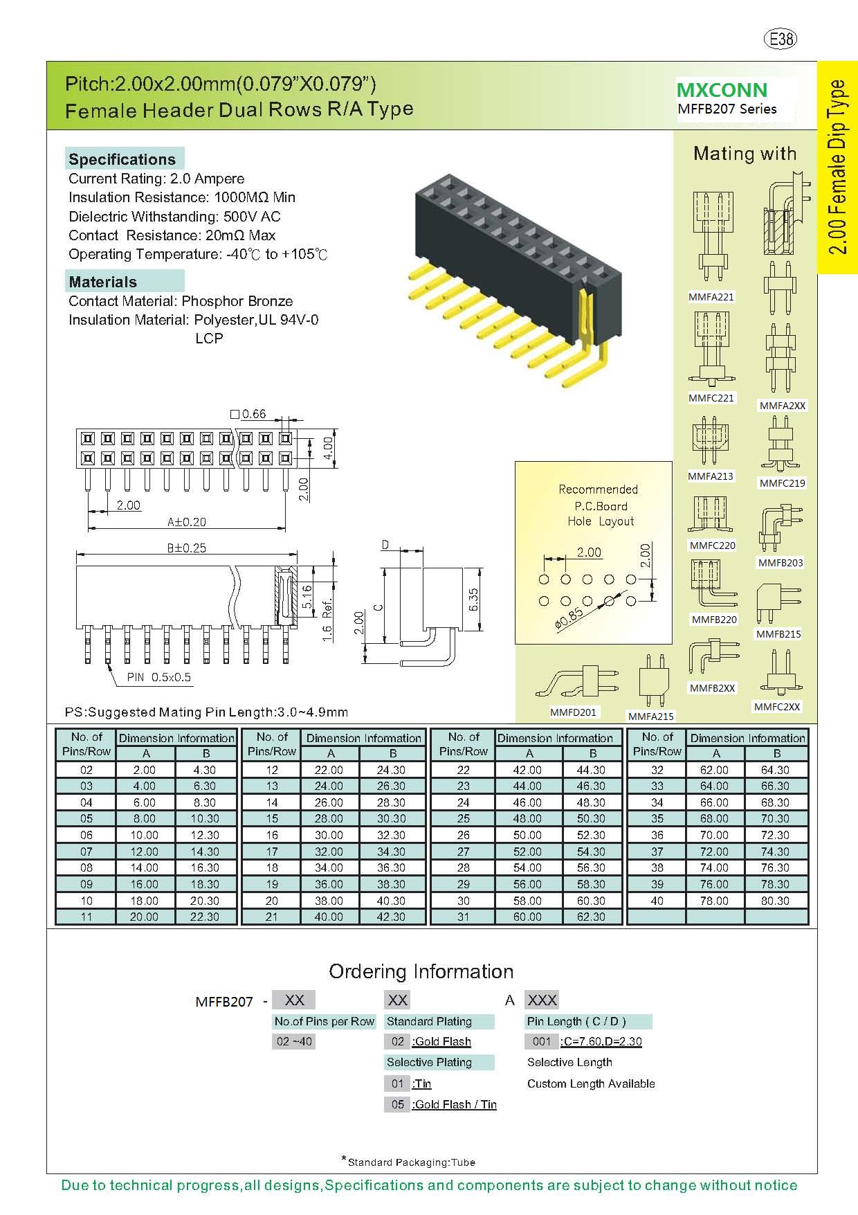 ·Pitch:2.0mm