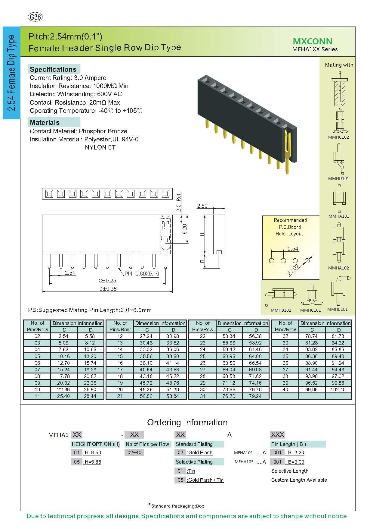 ·Pitch:2.54mm