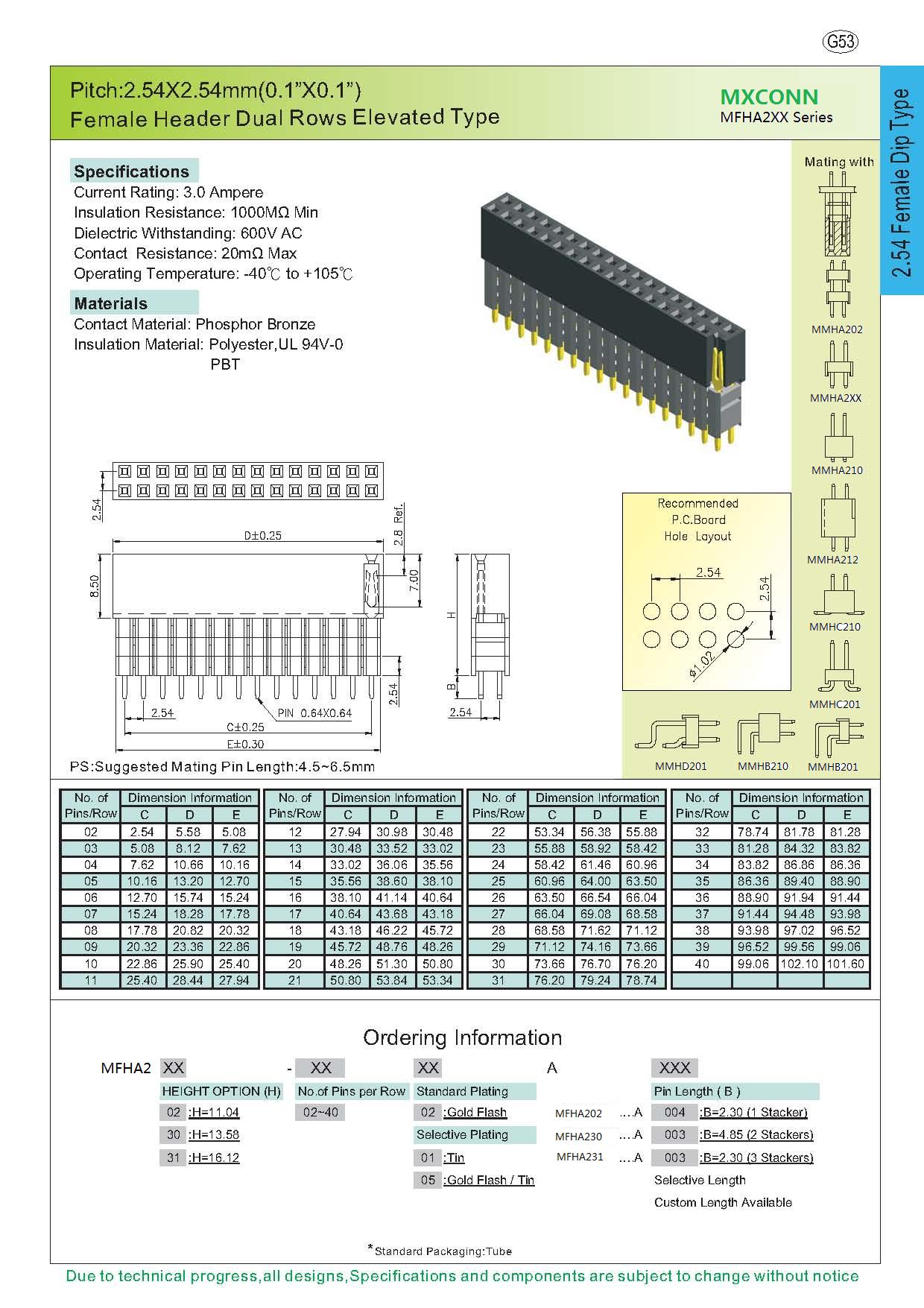 ·Pitch:2.54mm