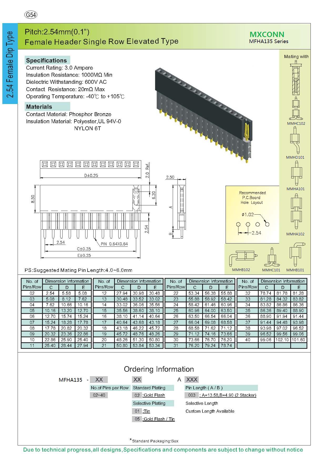 ·Pitch:2.54mm