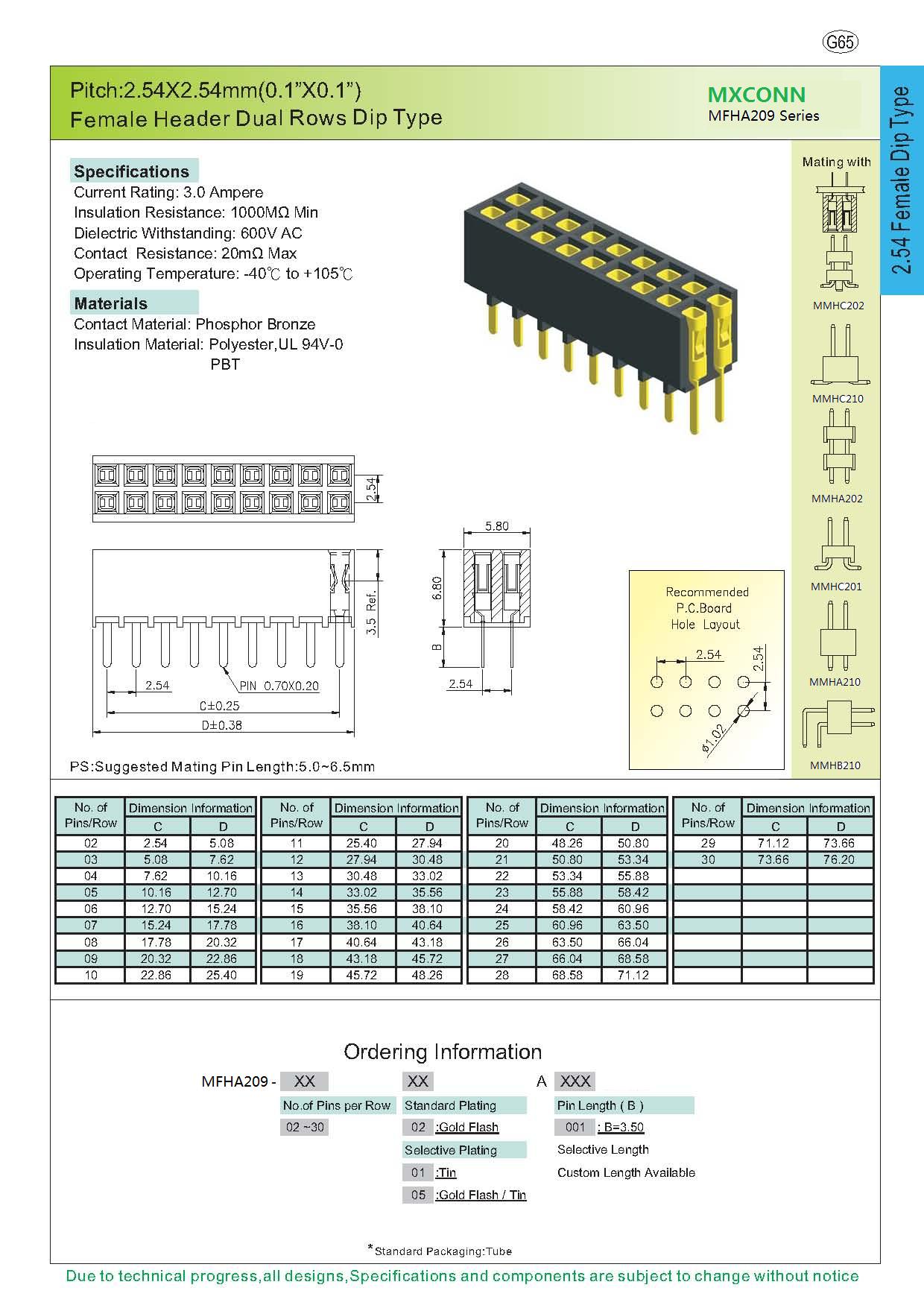 ·Pitch:2.54mm