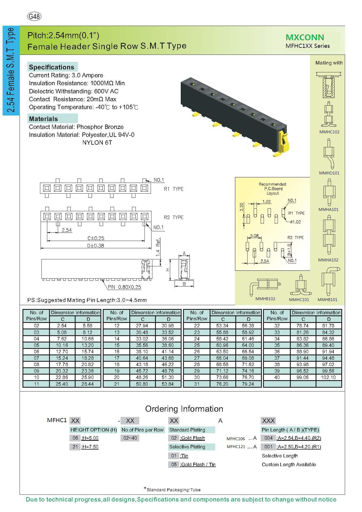 ·Pitch:2.54mm