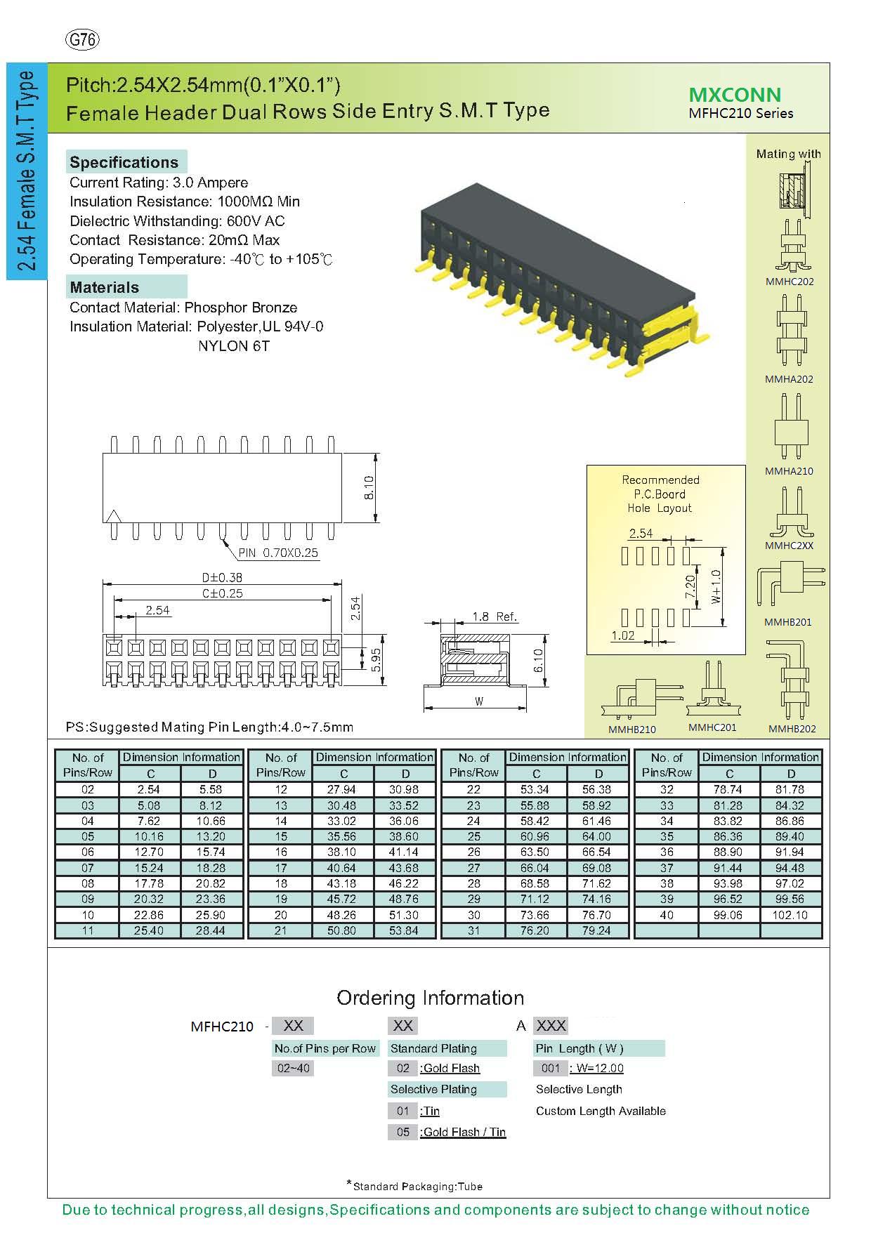 ·Pitch:2.54mm