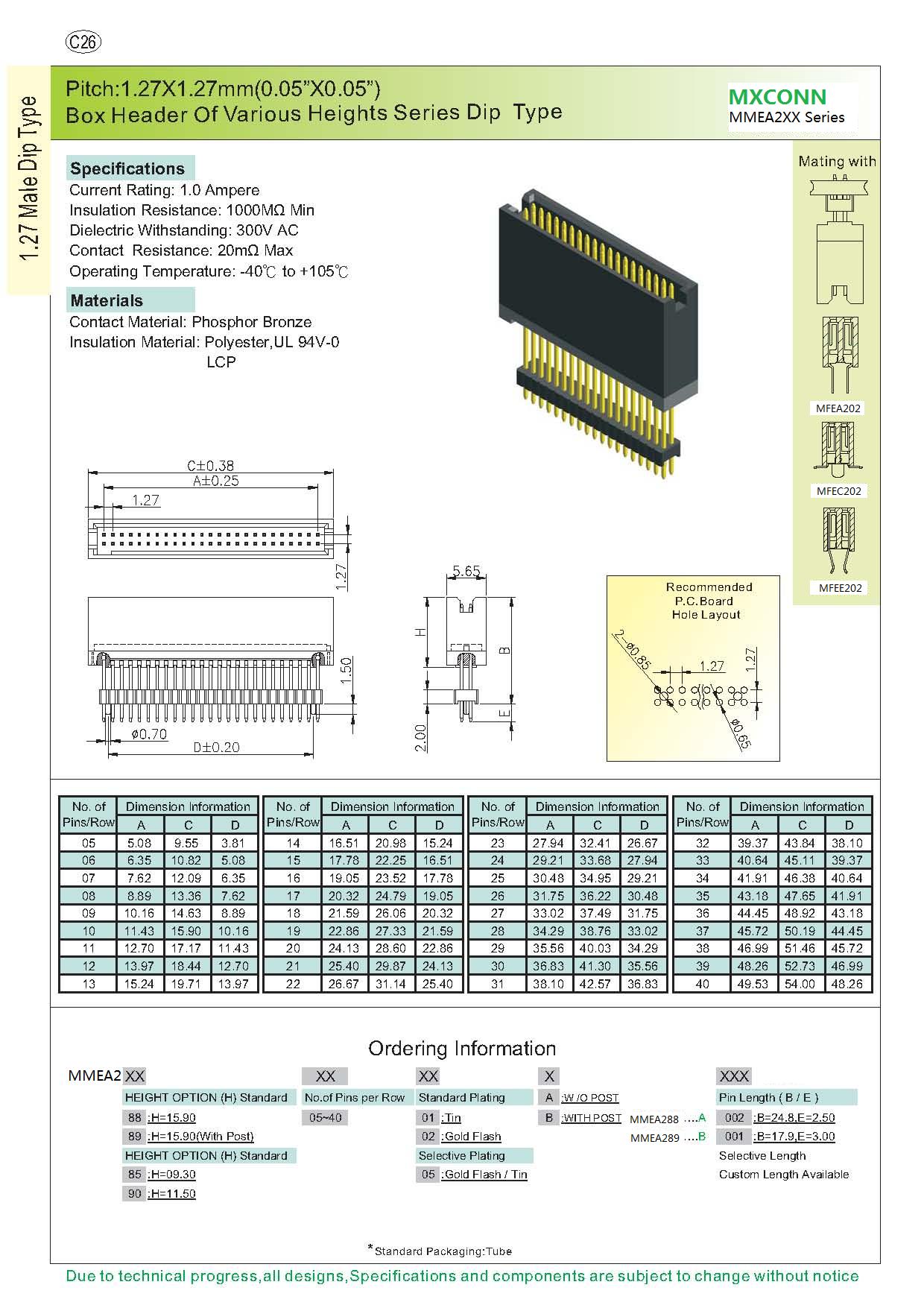 ·Pitch:1.27mm